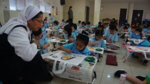 Surabaya, Santa Clara– Pagi ini, 21 Apri 2026, suasana TK Katolik Santa Clara terasa berbeda. Meja-meja kecil telah tertata rapi, kuas dan cat akrilik siap digunakan, dan di hadapan setiap anak, sebuah tas spunbond putih menanti untuk “dihidupkan” dengan warna.